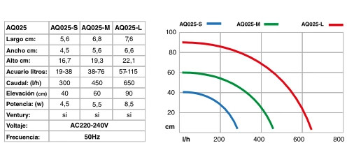 AQ025 L 650l/h para acuarios de 57-115 litros