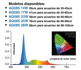 AQQA led AQ085 17w WRGB 41cm para acuarios de 45 a 60cm.