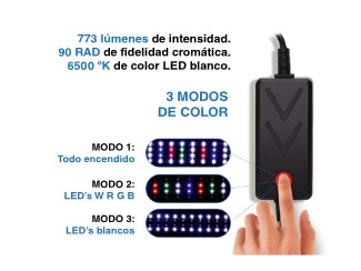 3 Modos de luz de color: Blanco; 2 filas y 4 filas de Blanco, Azul, rojo verde, mejorando la translucidez del acuario, resalta los colores, para una visual natural.