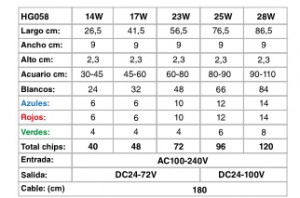 Pantallas LED WRGB+3 colors de espectro total para acuarios plantados. Aluminio 57cm Aplic 60-80cm.