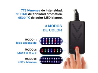 3 Modos de luz de color: Blanco; 2 filas y 4 filas de Blanco, Azul, rojo verde, mejorando la translucidez del acuario, resalta los colores, para una visual natural.