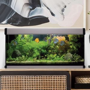 El Kit BASE incluye*: filtro exterior, pantalla LED, alimento para peces, acondicionadores, termómetro, termocalentador y guía del acuario.