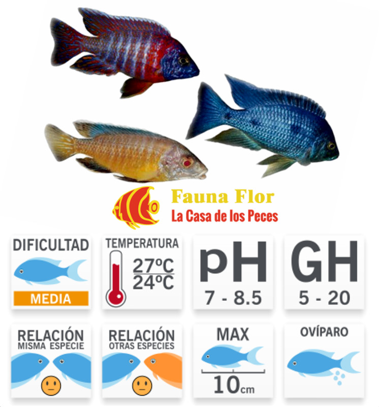 Compatibilidad: Se pueden mantener con otros cíclidos de Malawi que tengan necesidades de agua similares, pero es importante evitar especies extremadamente agresivas.