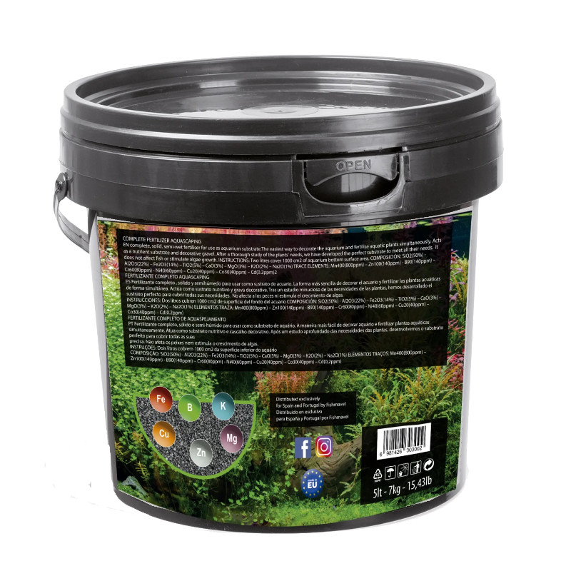 Sustrato granulado que provee a las plantas de oligoelementos que estimulan el crecimiento radicular. Su liberación lenta permite estar disponible en el medio acuático, asegurando una CIC perfecta para una mejor retención de nutrientes evitando que se pierdan durante los cambios de agua. Su estructura porosa, mantiene el fondo ventilado y evita la formación de zonas anóxicas. Al tratrarse de un sustrato poroso favorece la presencia de BACTERIAS BENEFICIOSAS Y EL CRECIMIENTO DE LAS RAÍCES EN LAS PLANTAS. No altera la dureza temporal y mantiene el pH estable.