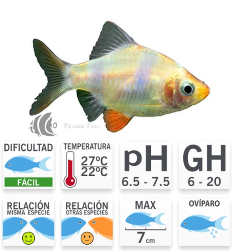 El barbo sumatra albino (Puntius tetrazona) es una variante del barbo sumatra, caracterizada por su cuerpo pálido con reflejos dorados y bandas rojizas. Es un pez activo y sociable, ideal para acuarios comunitarios con compañeros de temperamento similar.