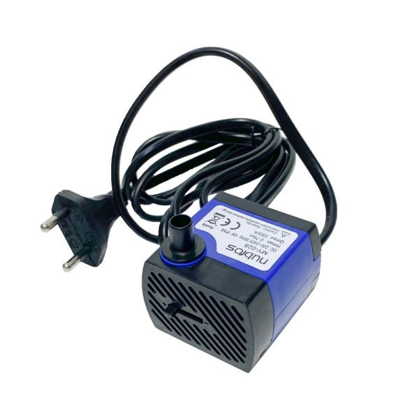 Bomba compacta y silenciosa, para acuarios de pequeñas dimensiones. Con un caudal regulable.Totalmente sumergible. Dispone de ventosas para una mejor fijación. Adaptable para filtros integrados. Consumo y dimensiones mínimas,solo 5 W . Para acuarios de agua dulce y salada. Altura máxima 0,80 cm. Ideal para terrarios, paludarios, maquetas, fuentes, belenes,etc.
