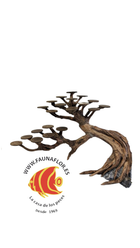 Bonsái construido con trocos y masilla (no tóxica) , para acuarios y terrarios. Ideal para decoraciones naturales paisajísticas " Aquascaping ". Para pegar o atar en sus pequeñas ramas musgo natural ( Weeping, Navidad, Flame... ) o plantas naturales ( Anubias, Hydrocotyle, Bucephalanda... ), obteniendo como resultado un bello aspecto, muy decorativo y crear un entorno totalmente natural. Puede diferir de la imagen.