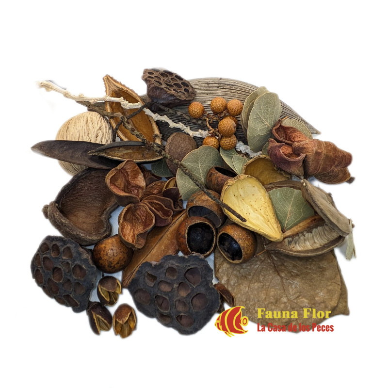 Los botánicos son elementos naturales como ramas, raíces, corteza, hojas, cascaras de fruto de árboles y tallos de plantas acuáticas o terrestres. Son materiales naturales que se utilizan comúnmente en acuarios para recrear entornos naturales y proporcionar beneficios adicionales a los peces y otras criaturas acuáticas. Provienen de diversas regiones del mundo, como Sudamérica, Asia, África y Oceanía, nos ofrecen belleza y funcionalidad en el acuari. Proporcionan refugio y áreas de reproducción para los peces, así como crean paisajes visualmente atractivos el el acuario. Otro de los grandes beneficios de los botánicos es la liberación de compuestos químicos, como taninos con propiedades antisépticas y fungicidas. Las hojas se van descomponiendo gradualmente en el agua, liberando taninos y otros compuestos que pueden ayudar acrear un ambiente similar al de los ríos y lagos naturales. También son un refugio y alimento natural para los habitantes del acuario, gamabario, paludario, terrario,etc. Las cáscaras de fruto pueden sevir como refugio para los peces, especialmente para aquellos que les gusta esconderse. Además, liberan sustancias que pueden tener efectos beneficiosos en la calidad del agua. USO Y PRECAUCIONES: Antes de introducir cualquier material natural al acuario, es importante hervirlo para eliminar cualquier organismo no deseado y reducir el riesgo de contaminación. Se recomienda hervir Los Botánicos durante al menos 15-20 minutos. Es importante tener en cuenta que estos materiales naturales pueden alterar el color del agua y el pH. Los taninos liberados por Los Botánicos pueden oscurecer el agua, dando un aspecto ambar o marrón. También pueden reducir ligeramente el pH del agua, volviéndola más ácida. Si desea mantener un pH específico en el acuario, se debe monitorear los niveles y ajustarlos según se necesario. En resumen, Los Botánicos, hojas y cascara de frutos de árboles son una adición en acuarios, ya que brindan beneficios estéticos y funcionales. Sin embargo, se deben tomar precauciones alutilizarlo, como hervirlos previamente y estar conscientes de sus efectos potenciales en el color y pH del agua.