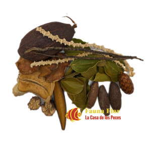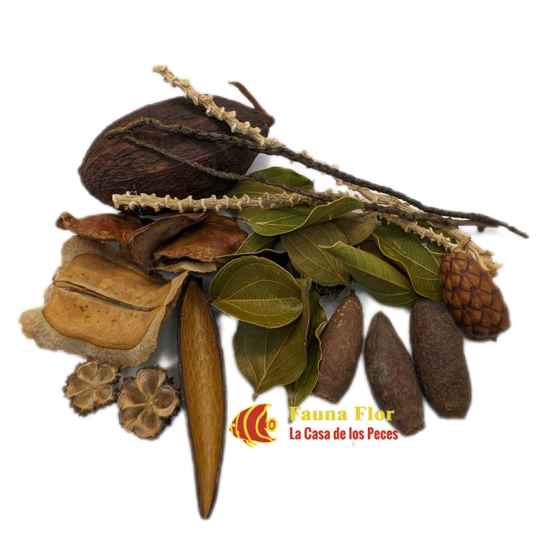 Los botánicos son elementos naturales como ramas, raíces, corteza, hojas, cascaras de fruto de árboles y tallos de plantas acuáticas o terrestres. Son materiales naturales que se utilizan comúnmente en acuarios para recrear entornos naturales y proporcionar beneficios adicionales a los peces y otras criaturas acuáticas. Provienen de diversas regiones del mundo, como Sudamérica, Asia, África y Oceanía, nos ofrecen belleza y funcionalidad en el acuari. Proporcionan refugio y áreas de reproducción para los peces, así como crean paisajes visualmente atractivos el el acuario. Otro de los grandes beneficios de los botánicos es la liberación de compuestos químicos, como taninos con propiedades antisépticas y fungicidas. Las hojas se van descomponiendo gradualmente en el agua, liberando taninos y otros compuestos que pueden ayudar acrear un ambiente similar al de los ríos y lagos naturales. También son un refugio y alimento natural para los habitantes del acuario, gamabario, paludario, terrario,etc. Las cáscaras de fruto pueden sevir como refugio para los peces, especialmente para aquellos que les gusta esconderse. Además, liberan sustancias que pueden tener efectos beneficiosos en la calidad del agua. USO Y PRECAUCIONES: Antes de introducir cualquier material natural al acuario, es importante hervirlo para eliminar cualquier organismo no deseado y reducir el riesgo de contaminación. Se recomienda hervir Los Botánicos durante al menos 15-20 minutos. Es importante tener en cuenta que estos materiales naturales pueden alterar el color del agua y el pH. Los taninos liberados por Los Botánicos pueden oscurecer el agua, dando un aspecto ambar o marrón. También pueden reducir ligeramente el pH del agua, volviéndola más ácida. Si desea mantener un pH específico en el acuario, se debe monitorear los niveles y ajustarlos según se necesario. En resumen, Los Botánicos, hojas y cascara de frutos de árboles son una adición en acuarios, ya que brindan beneficios estéticos y funcionales. Sin embargo, se deben tomar precauciones alutilizarlo, como hervirlos previamente y estar conscientes de sus efectos potenciales en el color y pH del agua.