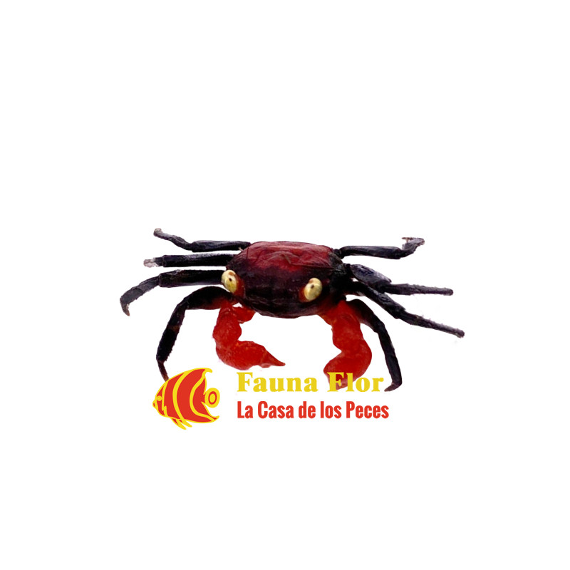 El cangrejo vampiro (Geosesarma sp.) es un pequeño cangrejo terrestre de colores vibrantes, con cuerpo oscuro y ojos brillantes, originario de selvas tropicales del sudeste asiático. Es una especie nocturna y tímida, ideal para paludarios.