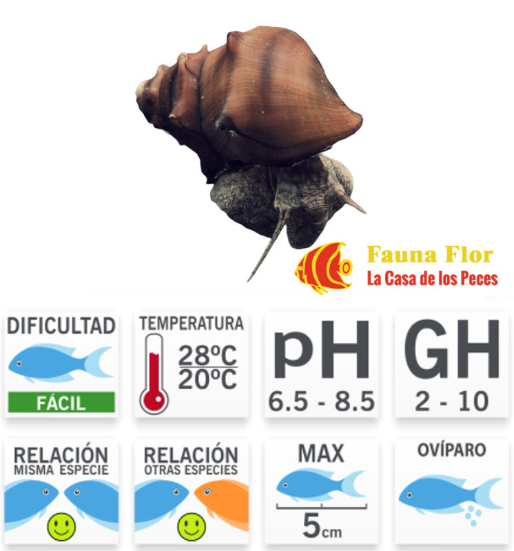 Nombre científico Brotia Pagodula. Son comunitarios y no atacan a ningún otro habitante del acuario.Buenos comedores de algas. Su concha tiene forma de espiral cónica, alargada y terminada en punta. De color entre marrón oscuro y rojizo. Es originario de Tailandia, vive en ríos de fondos rocosos y con corriente. Le gusta los acuarios con fondos arenosos. Alcanza un tamaño de 2-5 cm.