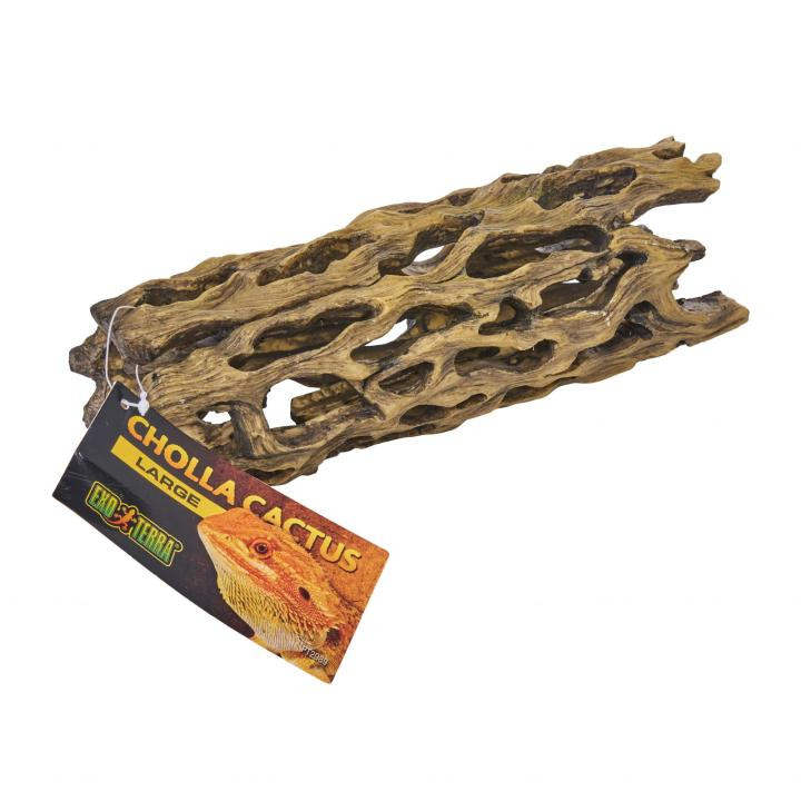 El cactus cholla es originario del sureste de Estados Unidos y el norte de México; el desierto de Sonora. La cholla es una planta parecida a un árbol con un tronco de ramas bajas que alcanzan una altura de 4 m. Crecen en espesos arbustos que forman el escondite perfecto para muchas especies de reptiles. Muchas especies viven alrededor de estos arbustos y buscan refugio cuando se ven amemazadas por depredadores, o simplemente para escapar del ardiente sol del desierto. Especialmente el esqueleto de este cactus es un gran escondiste para muchos reptiles, anfibios e invertebrados. El esqueleto de Cholla Exo Terra ofrece la alternativa sostenible perfecta, imitando la naturaleza.