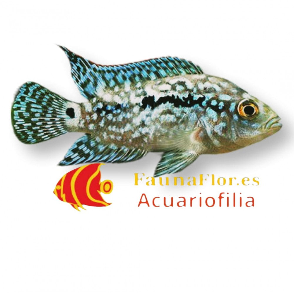 El Cichlasoma octofasciatum, conocido como cíclido Blue Dempsey o Jack Dempsey, es un pez de agua dulce originario de América Central. Destaca por su impresionante coloración azul metálico y su carácter fuerte, aunque el Blue Dempsey (variedad seleccionada) suele ser más tranquilo que la forma original. Es ideal para acuarios medianos a grandes con decoración natural y buena filtración.