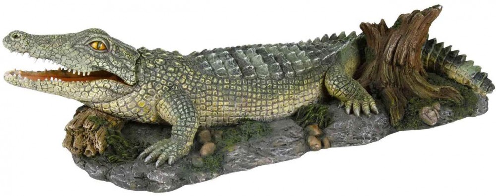 Un simpático cocodrilo al que se le abre la boca en un movimiento feroz. Con conexion para tubo de aire, no altera la calidad del agua, resistente al agua salada. No incluye bomba de aire.