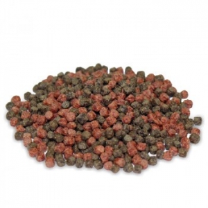 Alimento compuesto en gránulos para todos los peces rojos de tamaño medio, particularmente estudiado para alimentar oriflamas, shubunkin y otros numerosos tipos de carácidos, está enriquecido con sustancias que reavivan el color de estos peces.Suministar dos o tres veces al día,una cantidad de alimento tal que los peces puedan consumirlo en breve tiempo.