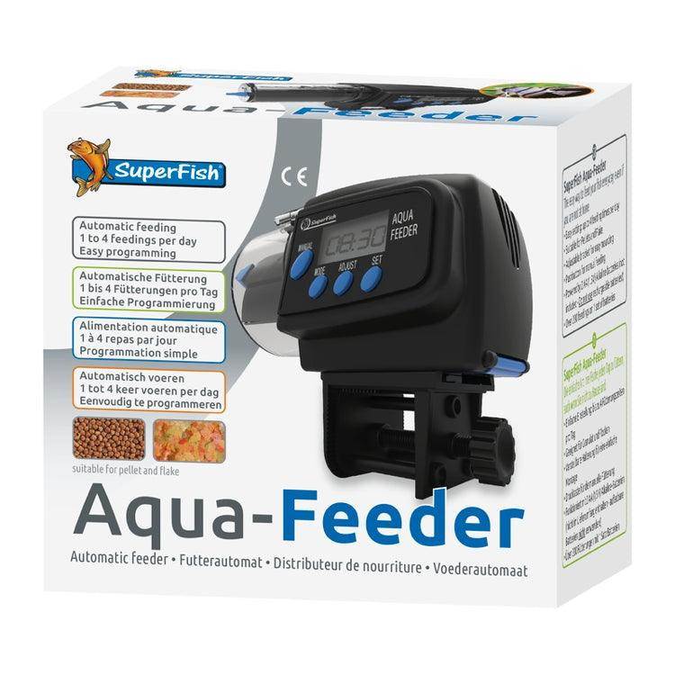 Distribuidor automático para una alimentación correcta de los habitantes de nuestro acuario durante los periodos de vacaciones y fines de semana ,etc. Contenedor hermético para la conservación del alimento. Con movimiento de roto-traslación para protección contra la humedad. Display digital para una fácil programación. La cantidad de alimento es ajustable. Nos permite hasta 12 raciones por día. Es valido para alimento granulado, en copos o sticks.