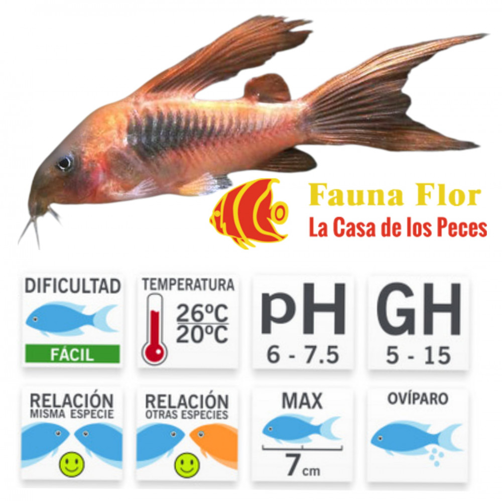El pez Corydora aeneus de leta larga, conocido comúnmente como el corydora bronce es originario de los ríos de América del Sur. Este pez es muy popular en acuarios debido a su coloración cobriza, que lo hacen destacar en cualquier configuración.