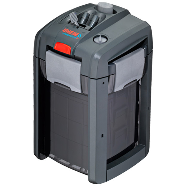Eheim professionel 5e le ofrece una inteligencia única y enormes ventajas funcionales. Ofrece todo lo que un entusiasta de los acuarios puede desear. Puede programarlo y controlarlo de forma inalámbrica e individual. El sistema electrónico controla todas las funciones y mantiene constante el caudal. Además le ofrece un gran rendimiento y un gran volumen filtrante. El diseño inteligente y la regulación electrónica del caudal amplía considerablemente los intervalos de limpieza del material filtrante biológico. La función Wifi integrada permite configurarlo de forma inalámbrica através de un smartphone, una tablet o un PC/MAC. Para su funcionamiento no se requiere de ninguna aplicación ( app ). Los modos libremente configurables son los siguentes, caudal constante, modo bio, modo impulso y modo manual. También puede ser conectado con otros aparatos, por ejemplo con el con trolador de iluminacón Ledcontrol+. Mantiene una supervisión electrónica permanente del sistema ( p,ej.expulsión automática del aire, elimina errores ). La función Wifi puede ser desactivada después de la configuración. Su prefiltro de buen tamaño es accesible, está situado debajo del cabezal de la bomba para una rápida limpieza de la suciedad mecánica sin tener que tocar el sensible material filtrante biológico. Llenado rápido del recipiente del filtro gracias a la ayuda del auto-cebado integrado. Dispone de un eje cerámico de alta calidad y libre de desgaste con rodamientos cerámicos que garantiza un funcionamiento extremadamente silencios. También dispone de adaptador de manguera de seguridad con bloqueo de fácil manejo; el adaptador sólo puede extraerse cuando las llaves de paso de las mangueras están cerradas. Con clips de cierre de seguridad de gran tamaño para una conexión absolutamente hermética y segura del cabezal de la bomba con el recipiente del filtro. Aporta una gran volumen filtrante por su recipiente de gran tamaño. Su sistema Easy Clean nos facilita una limpieza fácil y segura de los materiales filtrantes con al ayuda de la tapa de limpieza. Se puede prolongar el tiempo de funcionamiento del filtro a través del botón giratorio Xtender. Completamente equipado con accesorios de instalación y materiales filtrantes originales de EHEIM. Potencia de la bomba aprox. por hora 1500L. Altura de la bomba aprox. 2,2 m. Consumo electrico de 10w hasta 35w. Volumen del recipiente 7.4L. Volumen filtrante 4.5L. Volumen prefiltro 0.5L. Apto para agua dulce y marina.