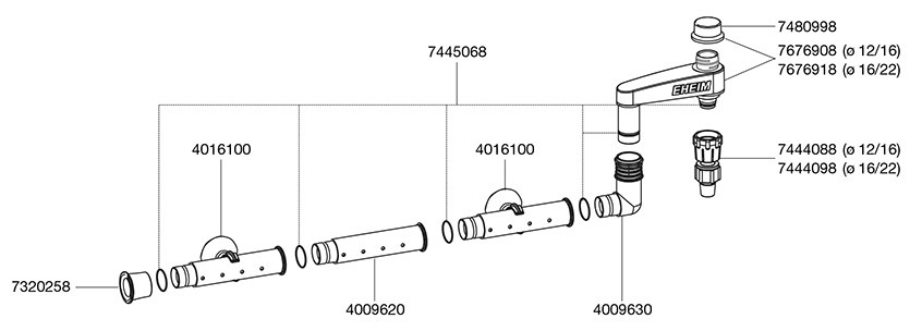 Dónde se debe aspirar el agua ? Cómo debería salir ? Qué tubos, mangueras, difusores, etc.hay que instalar ? Éste set de instalación tiene una construcción modular. Se compone de un gran número de componentes, adaptados el uno al otro, con los que puede diseñar y ampliar sus conexiones de agua completamente según sus deseos. Para la conexión en el lado de la salida de todos los filtros exteriores (excepto professionel 3e) . Nos facilita el control invidual de la dirección de la salida del agua. Con conexión segura e impermeable de la manguera. Según las necesidades de cada cual, se puede alargar o reducir el tubo de entrada. Se puede realizar la limpieza de la manguera sin tener que quitar las conexiones de la misma. Fijación segura y permanente en el acuario gracias a las ventosas.