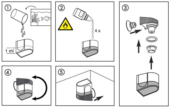 Set completo para el control constante del contenido de CO2 en el acuario. Para un crecimiento saludale de las plantas . Incluye una prueba a largo plazo,un reactivo indicador ( 10ml aprox.90 aplicaciones ) y tres tiras reactivas para el análisis de los valores iniciales del agua. La prueba de CO2 a largo plazo se une al cristal del acuario con una ventosa y se llena,hasta la marca indicada,con agua del acuario ( aprox.1ml) .Se agregan cuatro gotas de líquido reactivo y se espera al cambio de color el cuál comprobaremos en la escala indicadora. Cambie el líquido indicador con cada cambio de agua o después de aprox. 3-4 semanas.