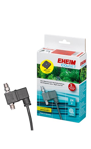 La válvula magnética le permite cortar el suministro de CO2 en el acuario si es necesario, por ejemplo, para regular el pH o durante la noche. Se puede ahorrar hasta un 50% de CO2 cambiando el suministro por la noche, ya que la fotosíntesis solo tiene lugar a la luz del día, donde las plantas absorben dióxido de carbono y liberan oxígeno. De noche o sin luz, las plantas consumen oxígeno, por lo que la fertilización con CO2 no sería beneficiosa. Esta válvula magnética ha sido especialmente desarrollada para el sistema de control de iluminación Eheim LEDcontrol+. Se conecta a la iluminación Eheim powerLED+ y LEDcontrol+ y desconecta el suministro de CO2 durante la fase de puesta de sol durante la noche. Al amanecer, se reactiva el suministro de CO2. La válvula magnética también se puede utilizar sin LEDcontrol+ con un temporizador estándar. Atención: la válvula magnética no es regulable.