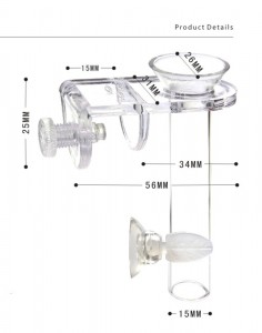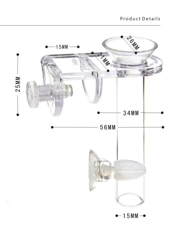 Fijación para el tubo de alimentación, muy fácil de colocar gracias a su ventosa de sujeción al cristal del acuario.Dosificaremos el alimento atraves del tubo, este caerá directamente en el lugar deseado en el acuario o gambario.Su bonito diseño visual transparente y elegante, la hace apropiado para cualquier acuario plantado.