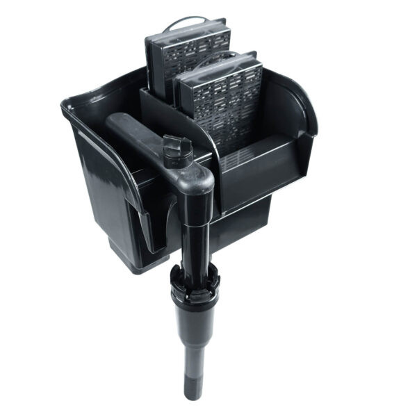 Compacto y silencioso. Su diseño colgante libera espacio dentro del acuario, permite ajustar el caudal y facilita el mantenimiento. Ideal para acuarios de agua dulce y marinos, acuarios plantados y aquaterrarios.