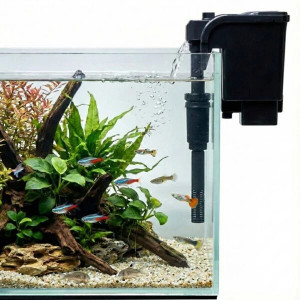 Compacto y silencioso. Su diseño colgante libera espacio dentro del acuario, permite ajustar el caudal y facilita el mantenimiento. Ideal para acuarios de agua dulce y marinos, acuarios plantados y aquaterrarios.