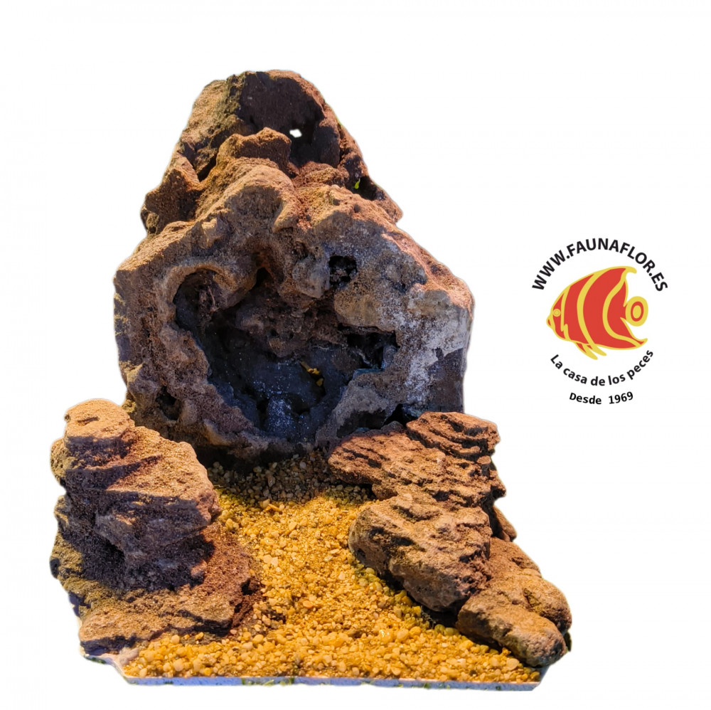 Composiciones de rocas o troncos para acuarios realizados artesanalmente.