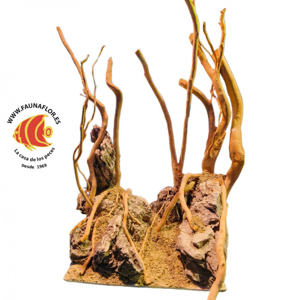 Composiciones de rocas o troncos para acuarios realizados artesanalmente.