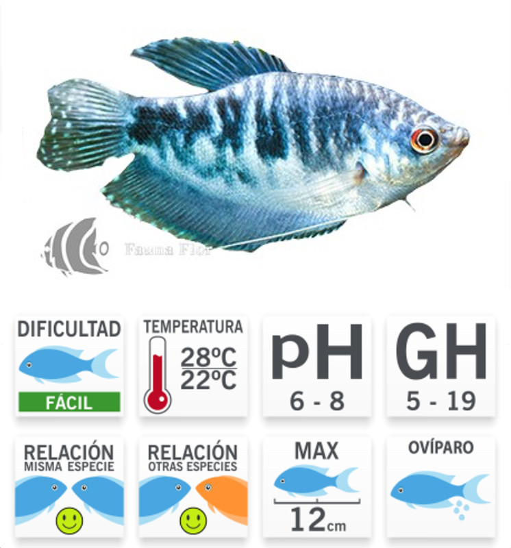 Nombres comunes: Gourami azul, gourami opalino, gourami de tres puntos
