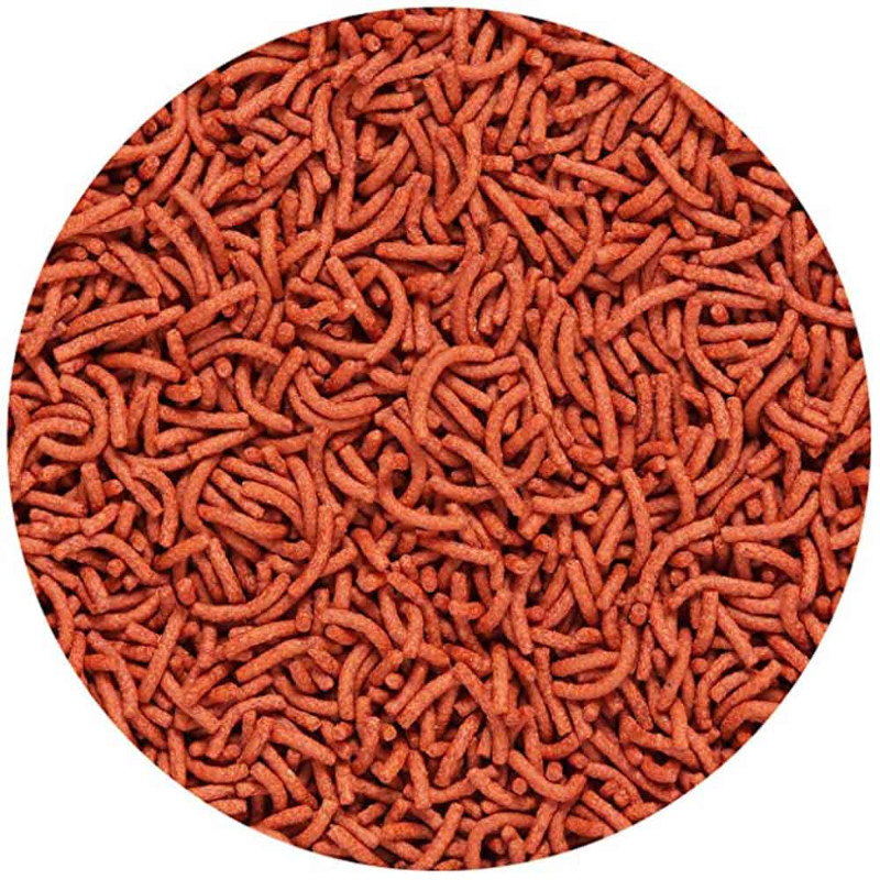 Hikari VIBRA Bites es un alimento específico para peces pequeños y Bettas. Son unos pequeños sticks con aspecto de gusanos de larva de mosquito rojo. El alimento se hunde lentamente y se mueve en el agua bajo el efecto de la corriente, igual que lo haría el alimento vivo, y esto provoca una reacción en la mayoría de los peces. Una alternativa al alimento vivo completamente segura, fue desarrollado para tener la forma y apariencia la larva de mosquito rojo, algo que a la mayoría de los peces tropicales les encanta. La formulación excepcionalmente equilibrada ofrece una nutrición que la larva de mosquito rojo simplemente no puede dar, sin los riesgos de parásitos o bacterias. Ingrediente únicos que ofrecen un sabor excepcional. Nutrientes científicamente mezclados que ayudan a resaltar rápidamente los colores brillantes de sus peces. Favorece al buen crecimiento de Bettas y de otros peces de tamaño pequeño en el acuario.
