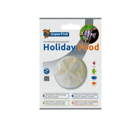 Los nuevos bloques son el alimento ideal para cuando nos vamos de vacaciones. No hay que preocupar por sus peces , ya que los bloques liberán lentamente todas las multi-vitaminas y nutrientes esenciales durante un período de hasta 14 días en un acuario con 15 peces en funcion deltamaño de los peces y sin ensuciar el agua de su acuario.