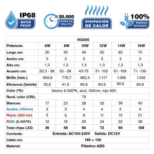 Pantallas LED Sumergibles WRGB HYGGER HG005 Espectro total para acuarios con plantas acuáticas.