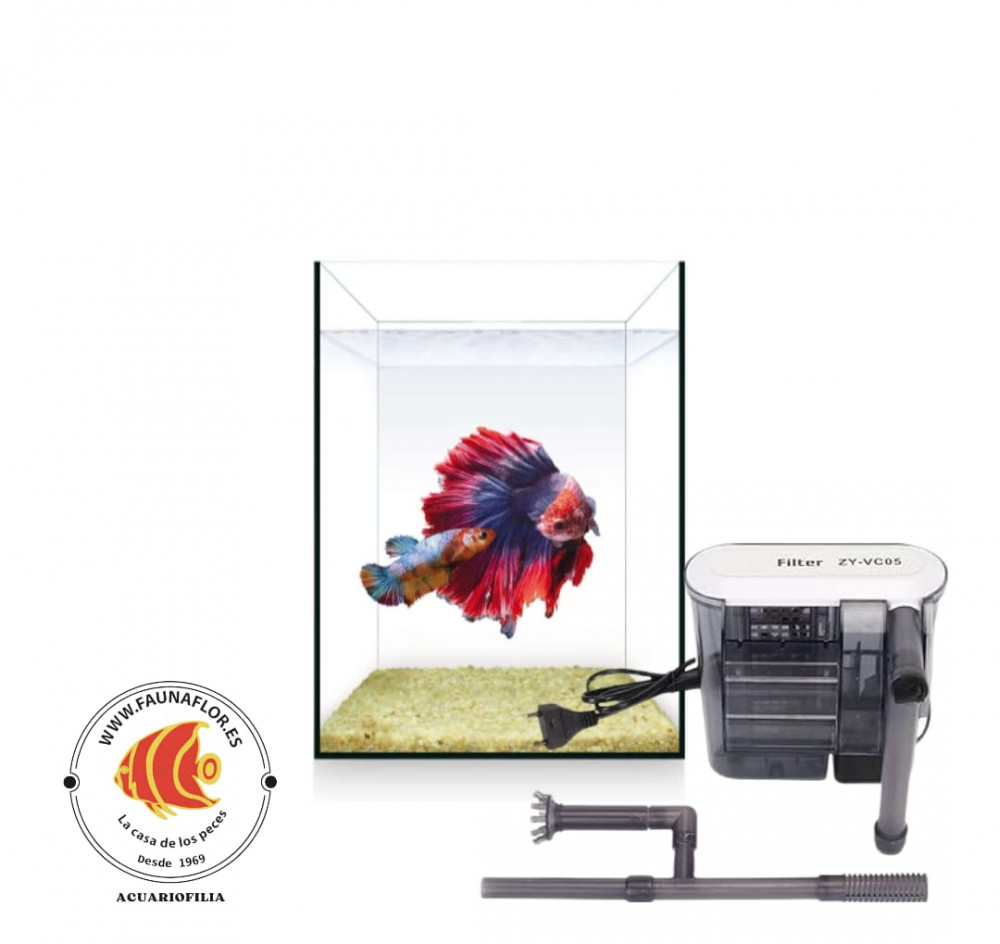 El kit incluye urna de cristal, Filtro de mochila y alfombrilla de espuma protectora.
