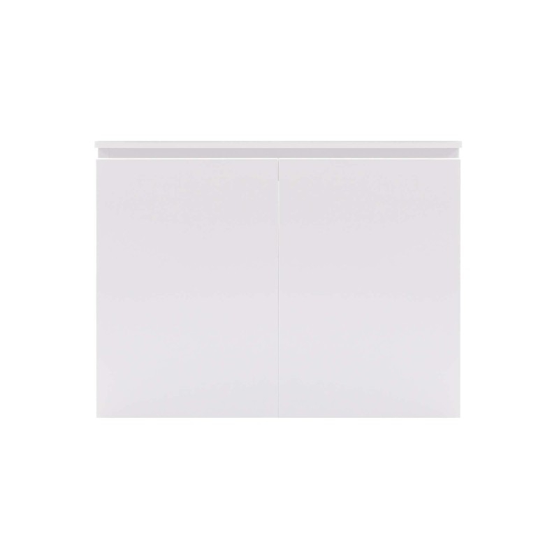 Diseño de puertas sin tiradores con Sistema "PUSH":Se abre al presionar la puerta.Tableros más gruesos con cantos más resistentes a la humedad.Disponible en dos colores blanco y negro.La altura de la mesa 75 cm.Con dos puertas.