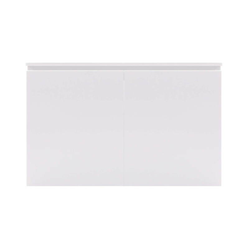 Diseño de puertas sin tiradores con Sistema "PUSH":Se abre al presionar la puerta.Tableros más gruesos con cantos más resistentes a la humedad.Disponible en dos colores blanco y negro.La altura de la mesa 75 cm.Con dos puertas.