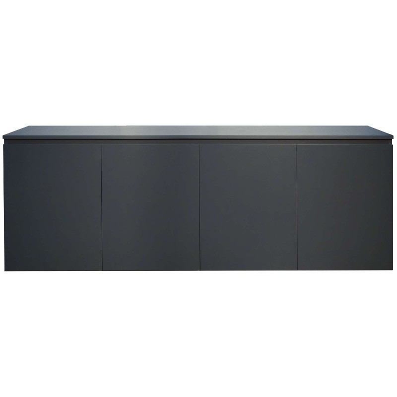 Diseño de puertas sin tiradores con Sistema "PUSH":Se abre al presionar la puerta.Tableros más gruesos con cantos más resistentes a la humedad.Disponible en dos colores blanco y negro.La altura de la mesa 75 cm.Con cuatro puertas.