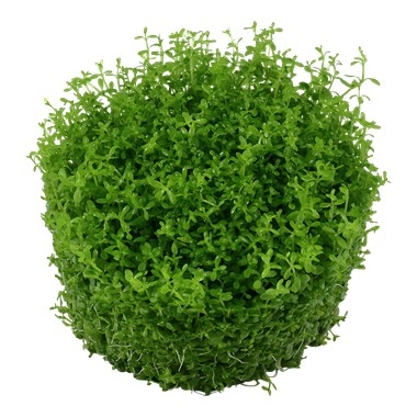 Planta natural In Vitro libre 100% de pesticidas,caracoles y algas. Micranthemum callitrichoides " Cuba " es una de las plantas de acuario más pequeñas del mundo y se arrastra por el fondo con hojas redondas de tamaño milimétrico. Planta de primer plano atractiva y popular para acuarios pequeños. No es una planta difícil, pero requiere buenas condiciones de luz, CO2 agregado, circulación de agua y fertilizantes para prosperar.Si estas condiciones son difíciles de crear, se puede utilizar Micranthemum " Monte Carlo " como alternativa, ya que es menos exigente. A menudo se producen pequeñas perlas o burbujas de oxígeno en la parte superior de las plantas, lo que agrega un aspecto muy vivo a la alfombra verde ya creada. Se planta en pequeños grupos a unos pocos centímetros de distancia, se extenderá rápidamente y cubriá el fondo como una alfombra. Recortar la alfombra con regularidad de lo contrario las partes inferiores no recibirán suficiente luz y provocarán la muerte de las raíces. Con una demanda media de luz en el acuario de 0,5 W / L. Su necesidad media de CO2 es de 6 a 14 mg / L.