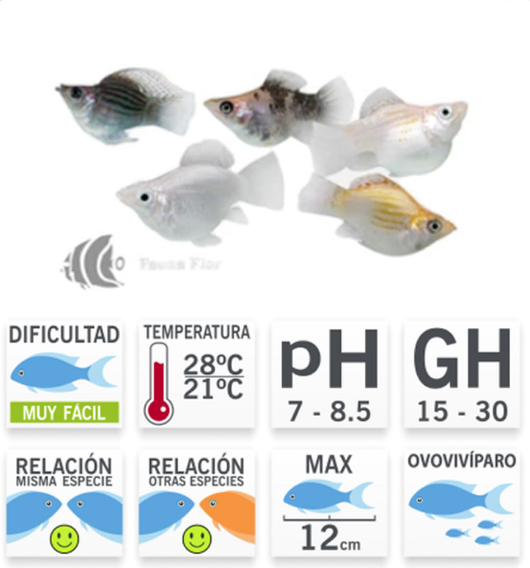Compañeros compatibles: Guppies, platys, corydoras, tetras pacíficos.