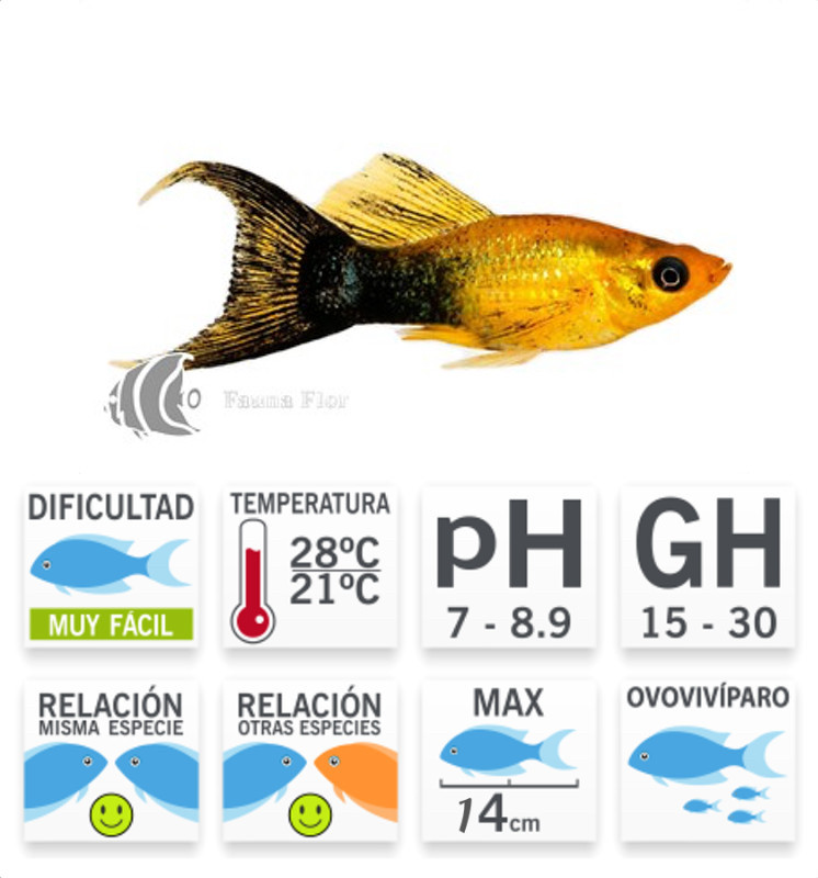 Comportamiento: Pacífico y sociable. Son peces vivíparos, lo que significa que las hembras dan a luz crías vivas en lugar de poner huevos.