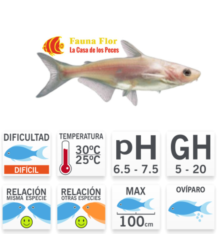 Descripción: El pangasius tiene un cuerpo alargado, con una cabeza grande y aletas amplias. Una de sus características distintivas es la gran aleta dorsal que presenta cerca de la cabeza. Es un pez que puede alcanzar un tamaño considerable en la naturaleza, típicamente hasta 130 cm, pero en acuarios usualmente permanece más pequeño, aunque todavía puede crecer considerablemente más de lo que muchos acuaristas pueden acomodar (hasta 90 cm en cautiverio).