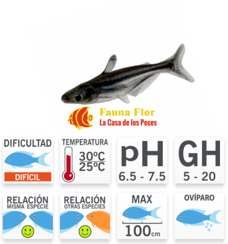 Descripción: El pangasius tiene un cuerpo alargado y plateado, con una cabeza grande y aletas amplias. Una de sus características distintivas es la gran aleta dorsal que presenta cerca de la cabeza. Es un pez que puede alcanzar un tamaño considerable en la naturaleza, típicamente hasta 130 cm, pero en acuarios usualmente permanece más pequeño, aunque todavía puede crecer considerablemente más de lo que muchos acuaristas pueden acomodar (hasta 90 cm en cautiverio).