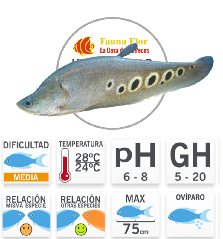El Chitala chitala, conocido como pez cuchillo Chitala, es un pez de agua dulce originario del sur de Asia. Tiene un cuerpo alargado y comprimido lateralmente, con una distintiva aleta anal ondulante que le permite moverse con gran agilidad. Suelen alcanzar entre 50 y 100 cm en acuarios grandes.