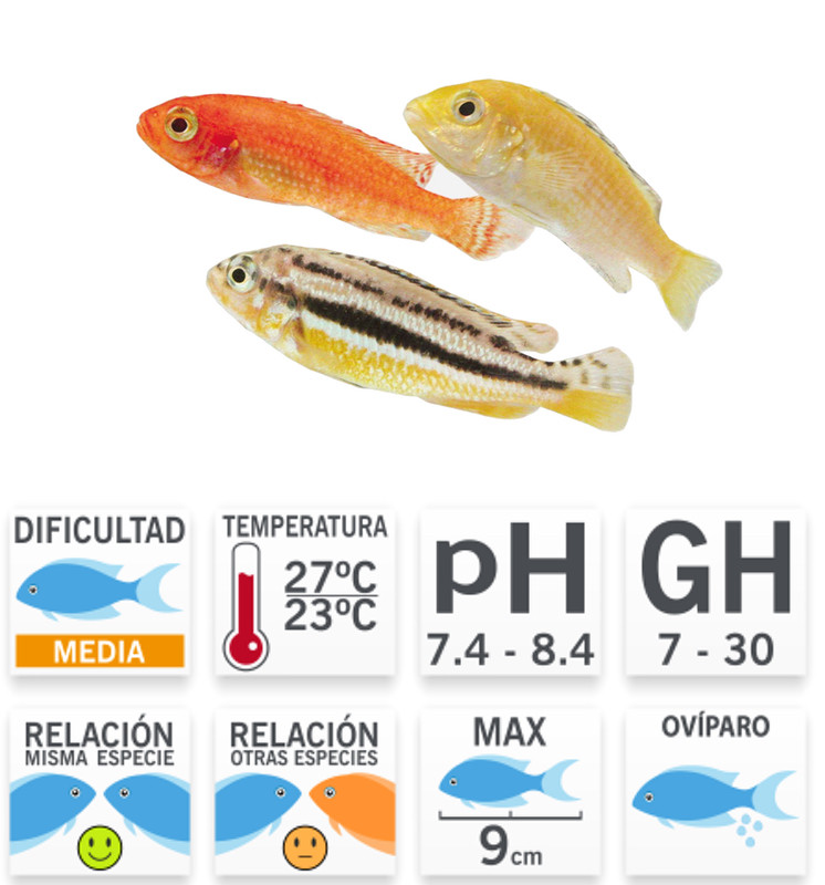 Compatibilidad: Mejor mantenerlos en acuarios específicos de cíclidos de Malawi. Evitar mezclarlos con especies más tranquilas o de diferentes requerimientos de agua.