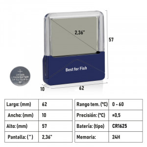 Termómetro digital de alta precisión ± 0,5ºC, con un rango desde 0 a 60ºC.