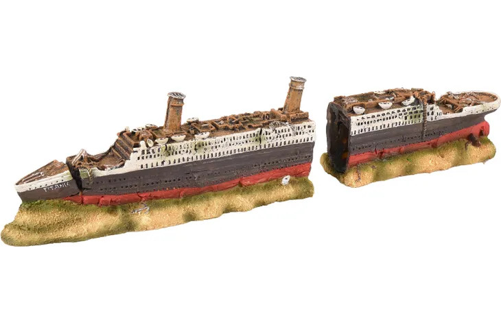 Simula el naufragio del Titanic con esté ornamento en dos piezas de increíble realismo. Fabricado con materiales de alta calidad y durabilidad. Totalmente seguros para todos los habitantes del acuario. Dará un toque de originalidad y colorido a tu acuario. Combinalo con plantas naturales, gravas, arenas, etc. y crea un bonito paisajísmo acuático