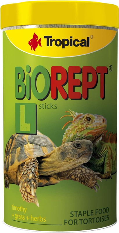 BIOREPT L es un alimentlo con multiples componente en porcines enteras en forma de sticks para la alimentación diaria de tortugas terrestres criadas en terrario. El alimento es ligero, fácilmente asimilable y consumido con gusto por las tortugas. Tiene un nivel óptimo y equilibrado de los nutrientes básicos y complementarios, seleccionados según las necesidades alimentarias de tortugas terrestres. Alimentar 1-2 veces al día. Los restos del alimento no consumido deben eliminarse del comedero.