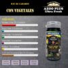 Tableta Premium Vegetal Plecos | Ultra Fresh Vegetables Shrimp Pie Contiene una proporción entre carne y otros vegetales de 3 a 7. Tienen un comportamiento en el agua de hundimiento rápido, pero tardarán en disolverse en el agua varias horas para mantener el agua limpia mientras son consumidas.