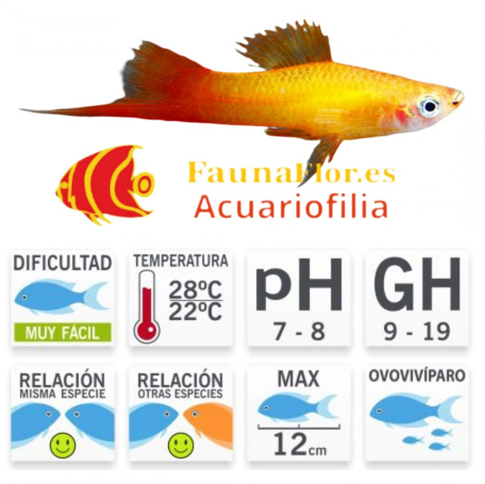 Xiphophorus helleri (conocido comúnmente como xipho marigold) es un pez de agua dulce muy popular en acuariofilia. Se caracteriza por su cuerpo alargado y la prolongación en forma de "espada" en la aleta caudal de los machos. El nombre "marigold" se refiere a sus vistosos patrones de color que suelen combinar rojo, dorado y tonos naranjas.